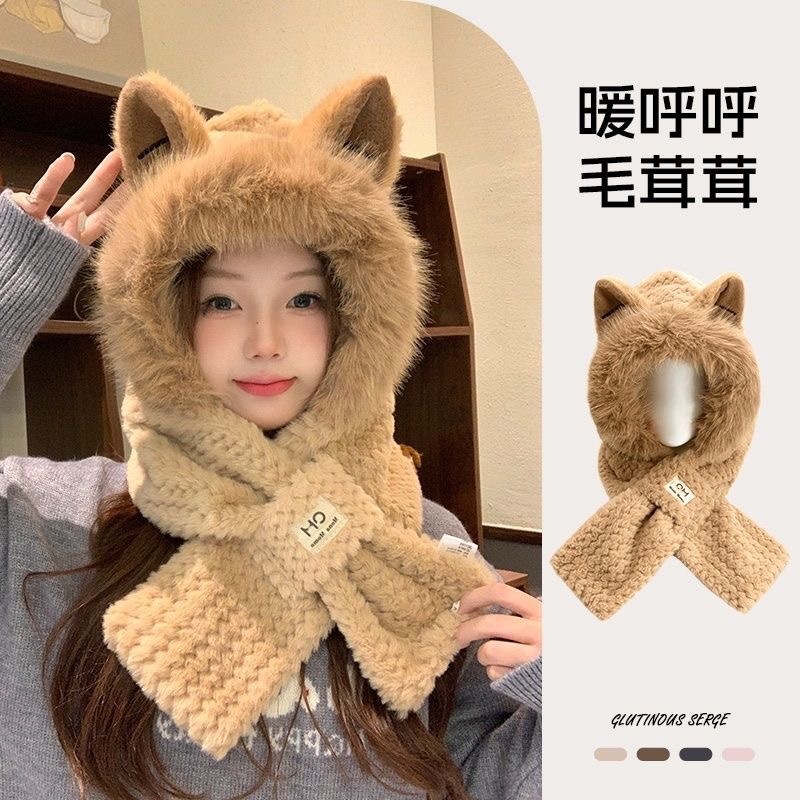您的位置:天天特价网  >   >  秋冬季帽子女可爱毛绒绒围巾加厚一体围脖毛绒帽保暖护耳神器