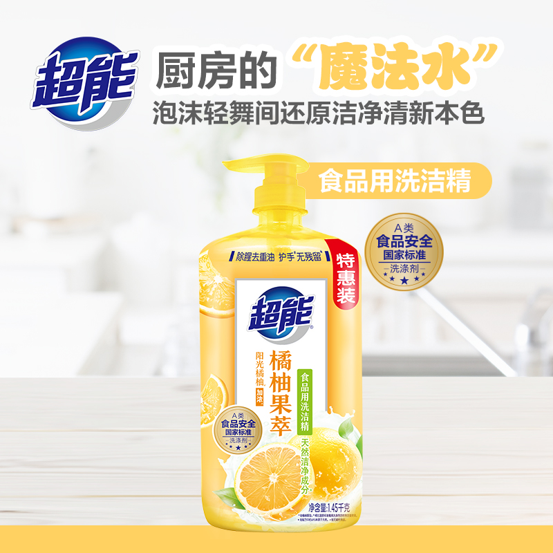 您的位置:天天特价网  >   >  超能洗洁精橘柚果萃1.45kg*3除腥去重油护手无残留可洗奶瓶果蔬
