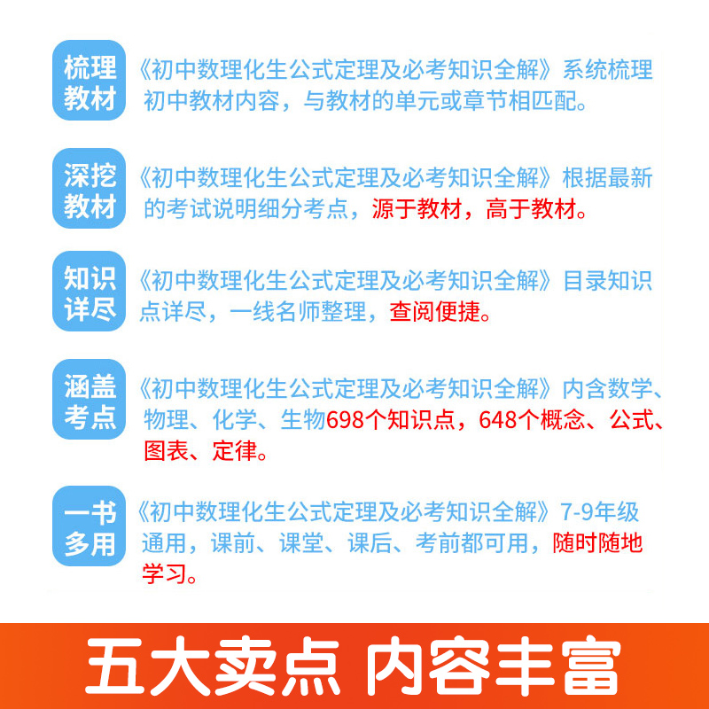 您的位置:天天特价网  >   >  开心初中数理化生公式定理词典一本全必考必背知识点全解汇总大全初一二三七八九年级数学物理化学生物人教版教材归纳总结