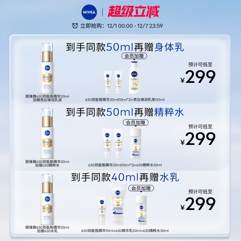 您的位置:天天特价网  >   >  妮维雅630双能瓶精华抑黑抗糖美白淡斑去黄提亮面部补水官方正品