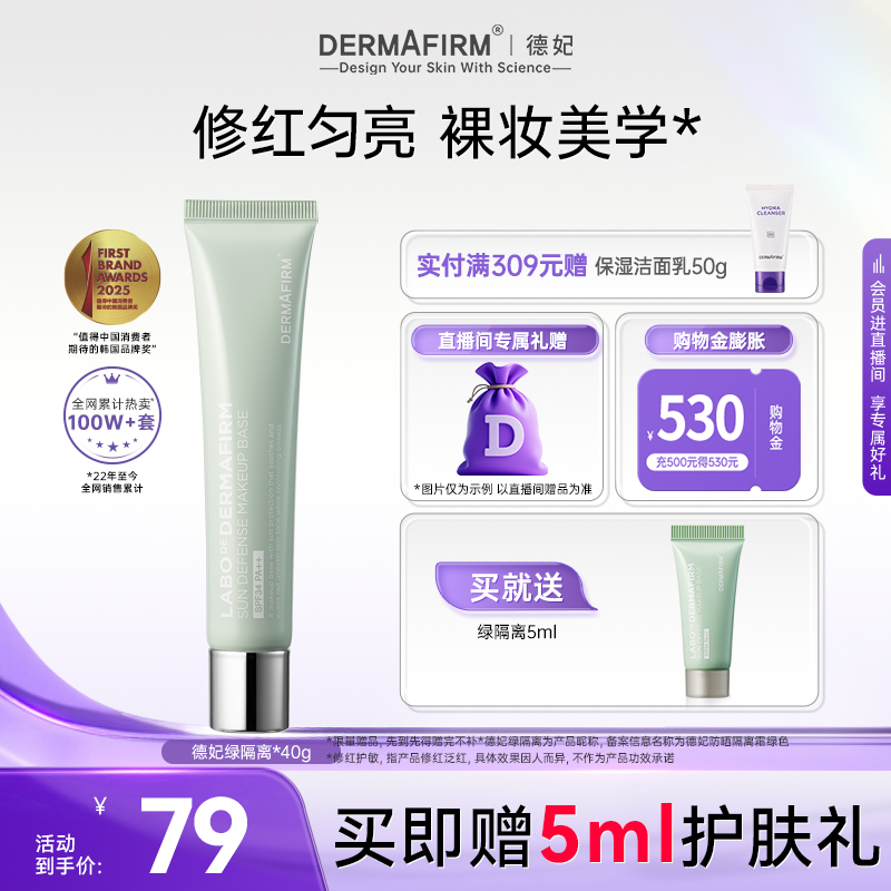 您的位置:天天特价网  >   >  【直播加赠】德妃紫苏隔离遮瑕保湿控油养肤防晒三合一妆前SPF35+