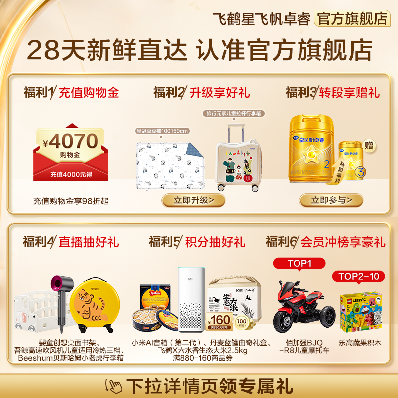 您的位置:天天特价网  >   >  【新升级】飞鹤星飞帆卓睿一段奶粉 HMO婴幼儿牛奶粉750g*6罐官方
