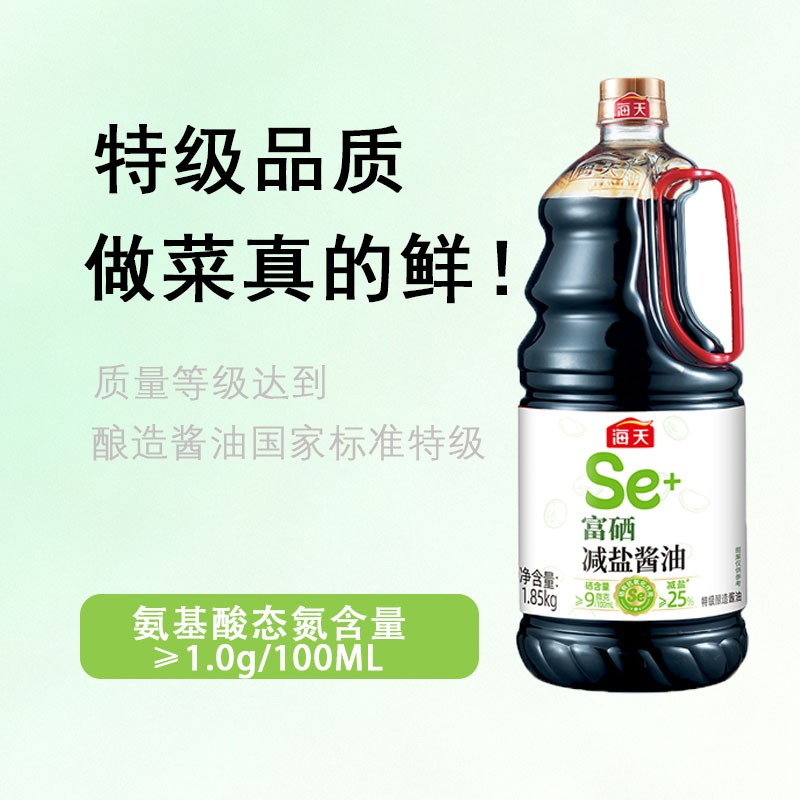 您的位置:天天特价网  >   >  海天富硒减盐酱油1.85kg家用厨房酿造酱油调味炒菜烹饪点蘸红烧汁