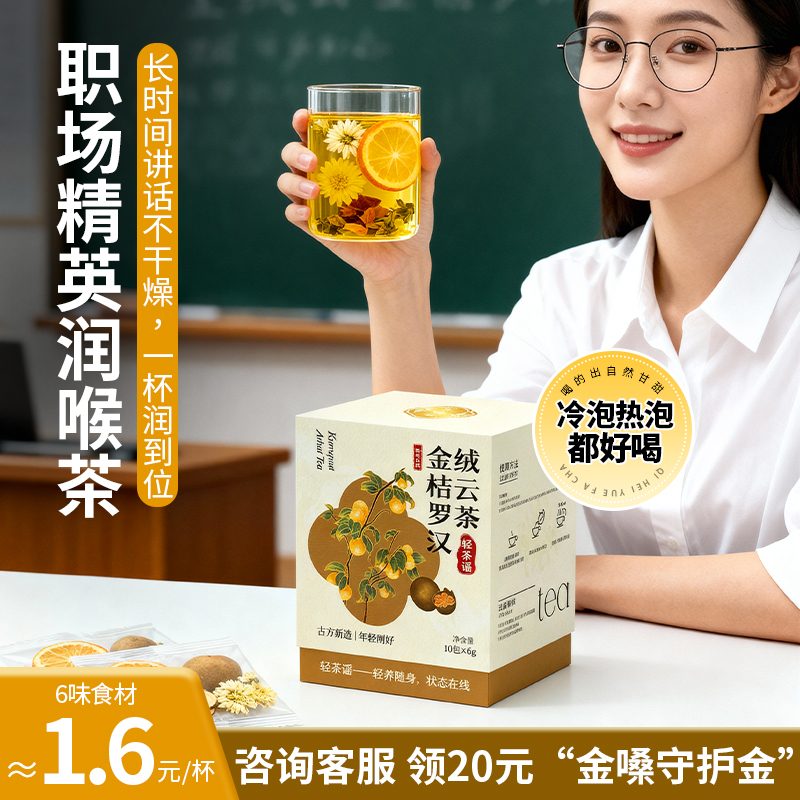 您的位置:天天特价网  >   >  轻茶谣金桔罗汉果茶独立茶包 熬夜养生茶男女士清润陈皮茶养身茶