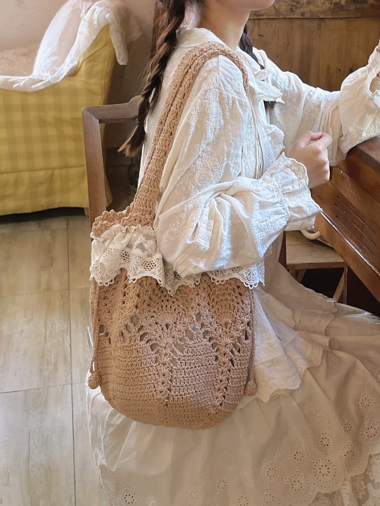 你看着它不大,但是日常物品能够轻松收纳,平时出行轻松毫无压力。这样的少女心蕾丝边非常适合森系穿搭的女生,我一般穿一些温柔风裙子会背着它。
