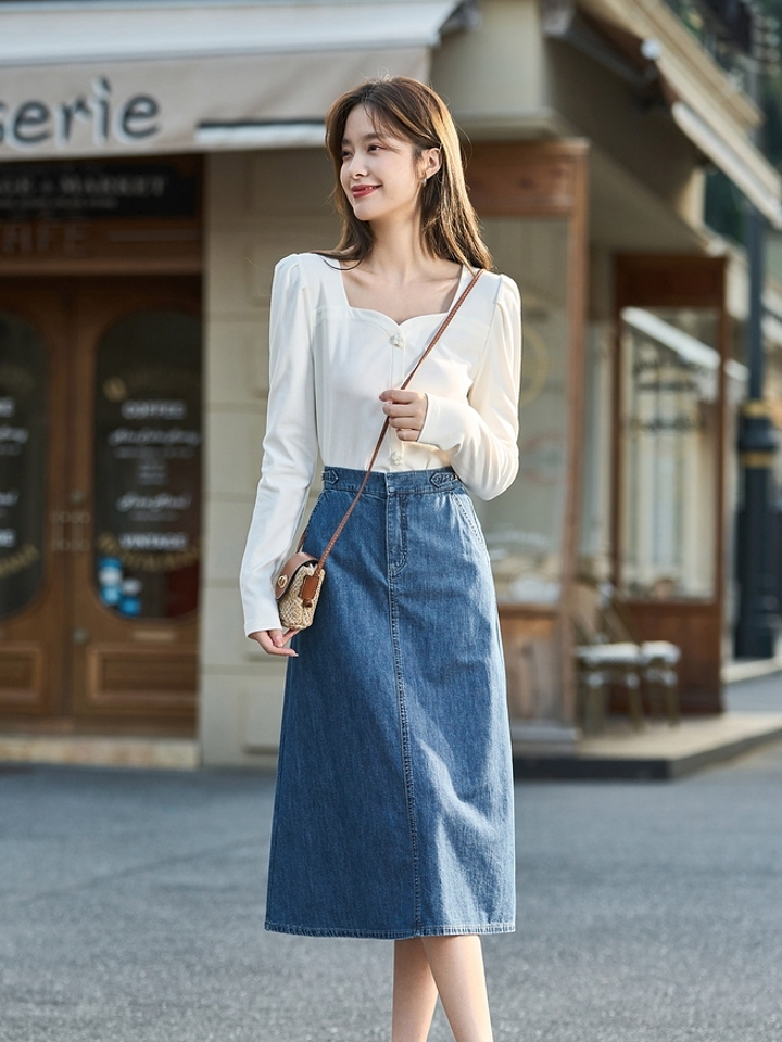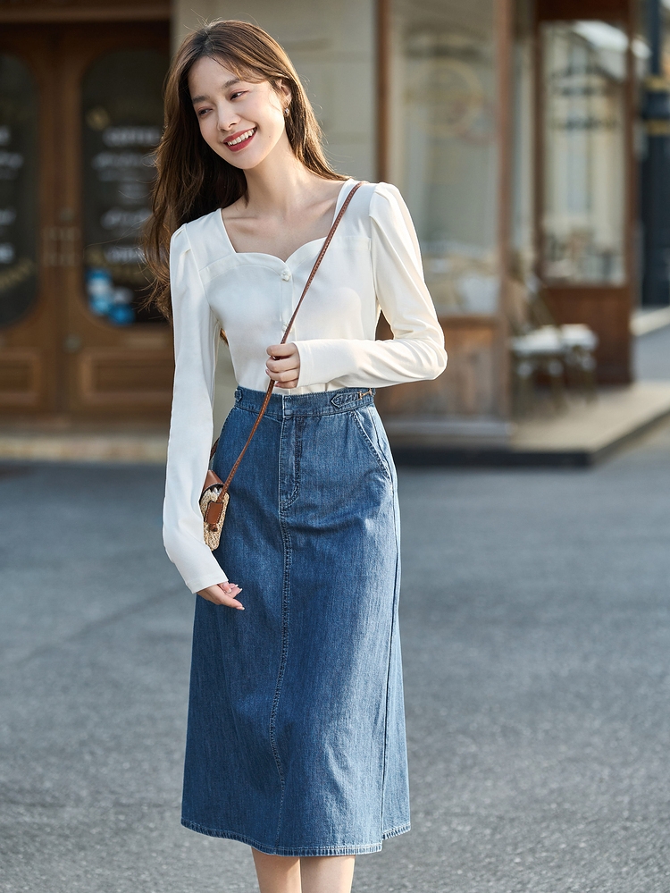 舒适的高腰半身裙加上隐形0选择优质牛仔布面料,手感厚实细腻柔软舒适!