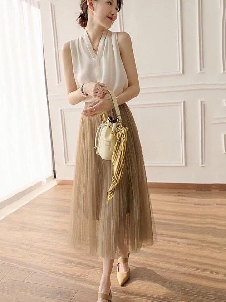 高端时尚中长款两件套服装,为当代女性提供创新、优质的服装,充分展现性感的肩颈收腰。中长版也很容易遮住烦恼的赘肉!