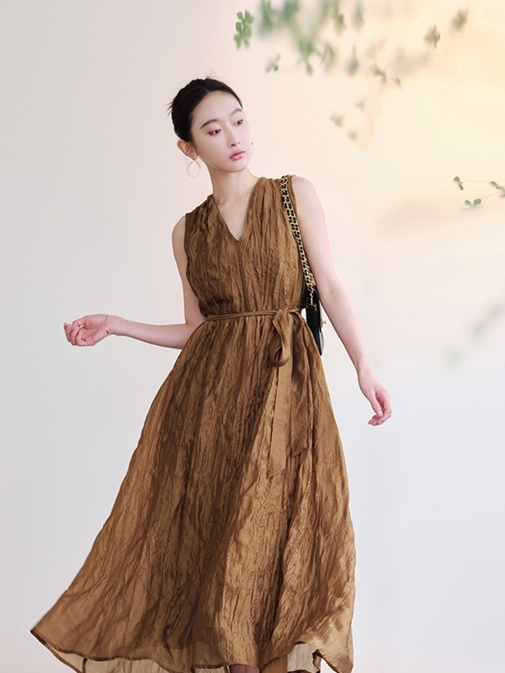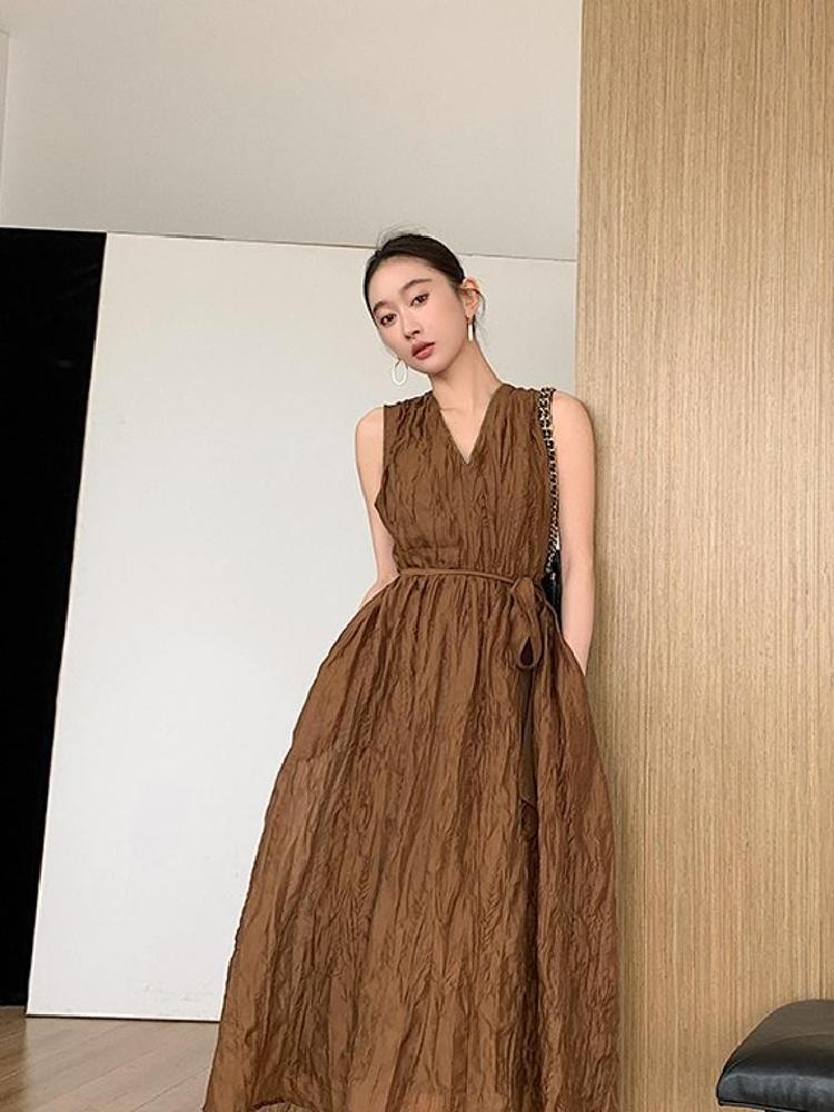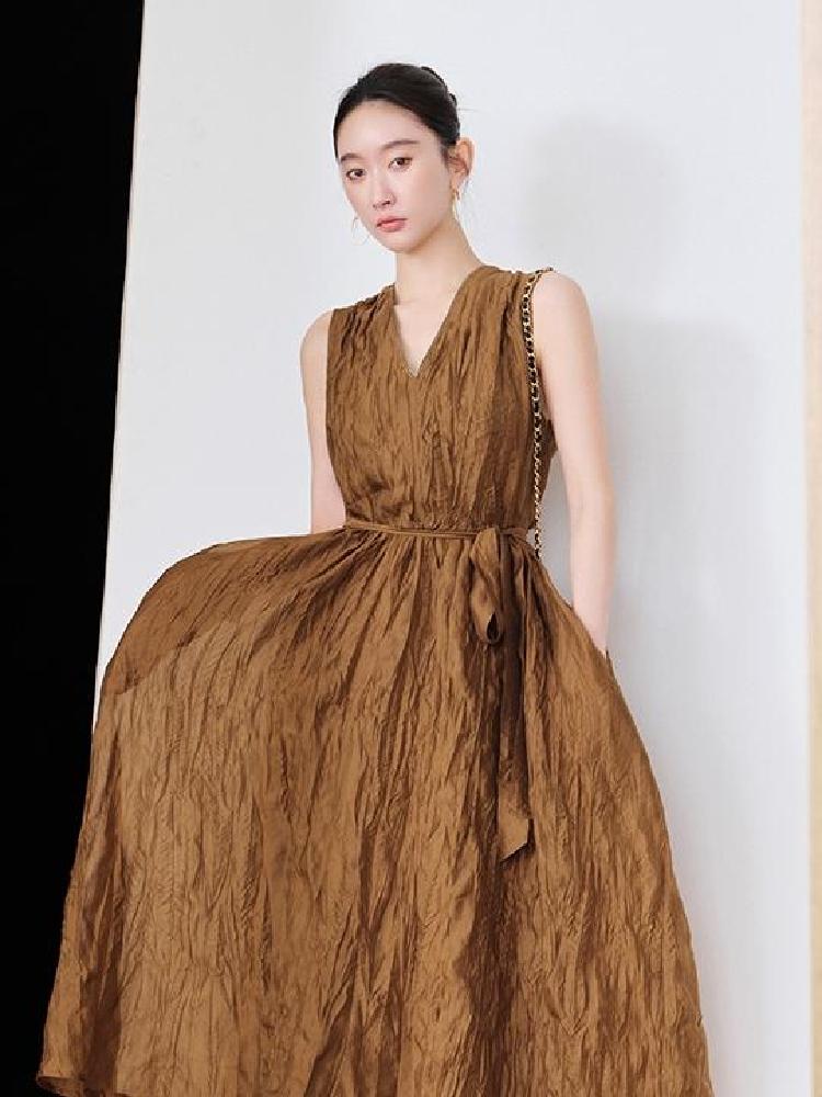 气质背心连衣裙采用主色调选择,没有太多其他装饰。前面很像背心,营造出叠加的层次感。