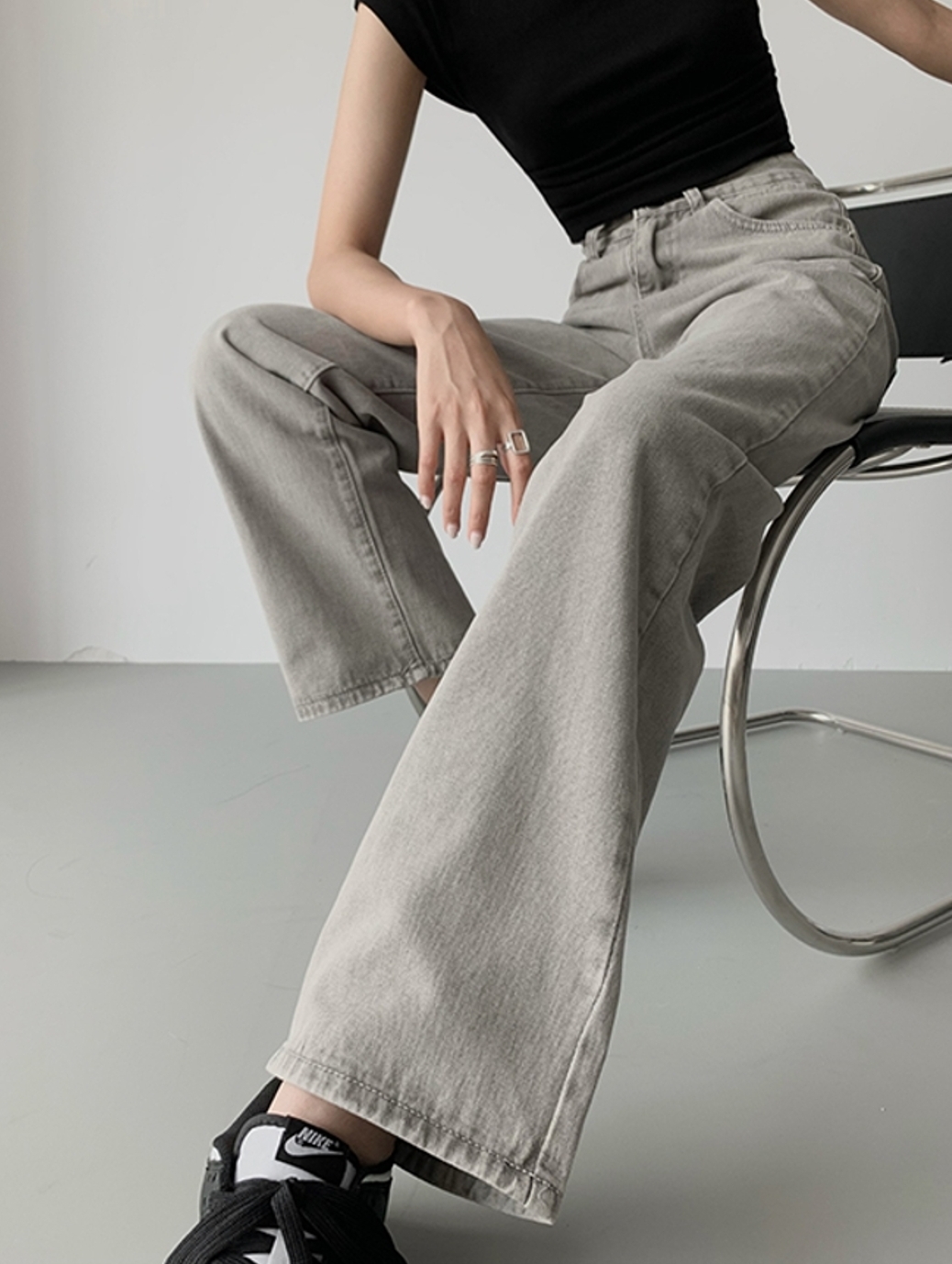 气质浅灰色,搭配一双平底小白鞋简直就是炒鸡无敌显瘦哦。布料厚实垂感强,跟任意上衣搭配都能碰撞出耀眼的火花。