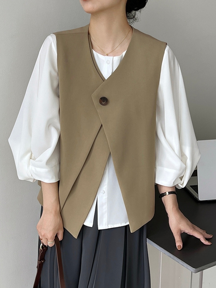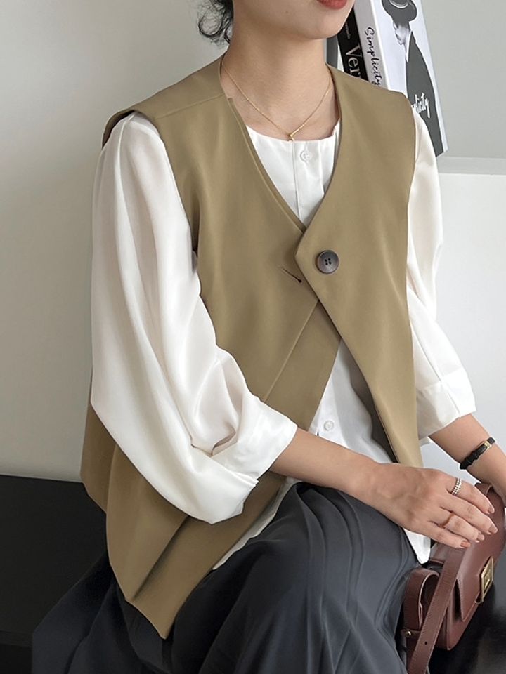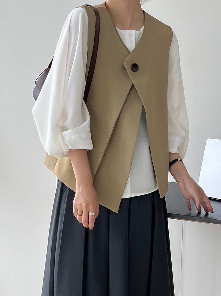 V领马甲采用的材料使衣服不会感到紧身。穿着舒适,手感柔软。V领设计不仅可以修身面部线条,还可以展现纤细的锁骨~