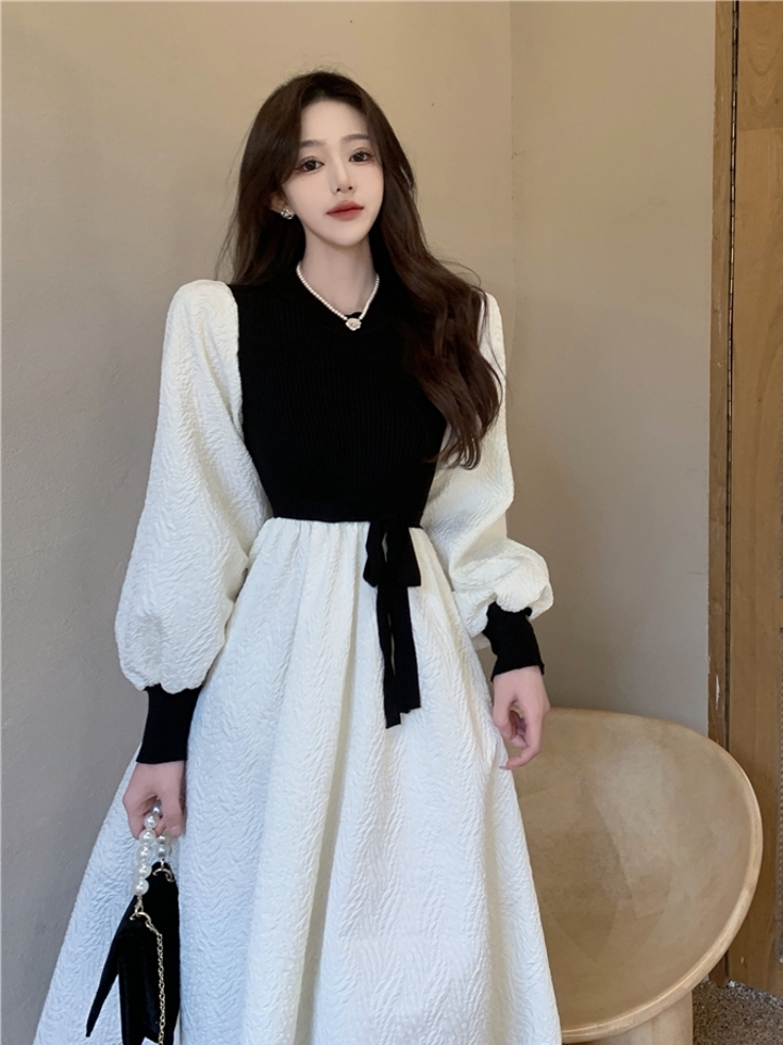 让0拼接连衣裙呈现出不一样的层次感。选择作为基调领口的恰到好处,起到点睛作用~~