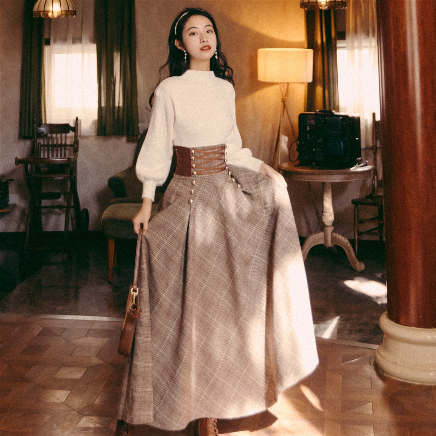 法式复古风的半身裙采用束腰的高腰设计,让整体的视觉清新文艺范儿,前绑带的设计,带来欧式宫廷风的既视感。