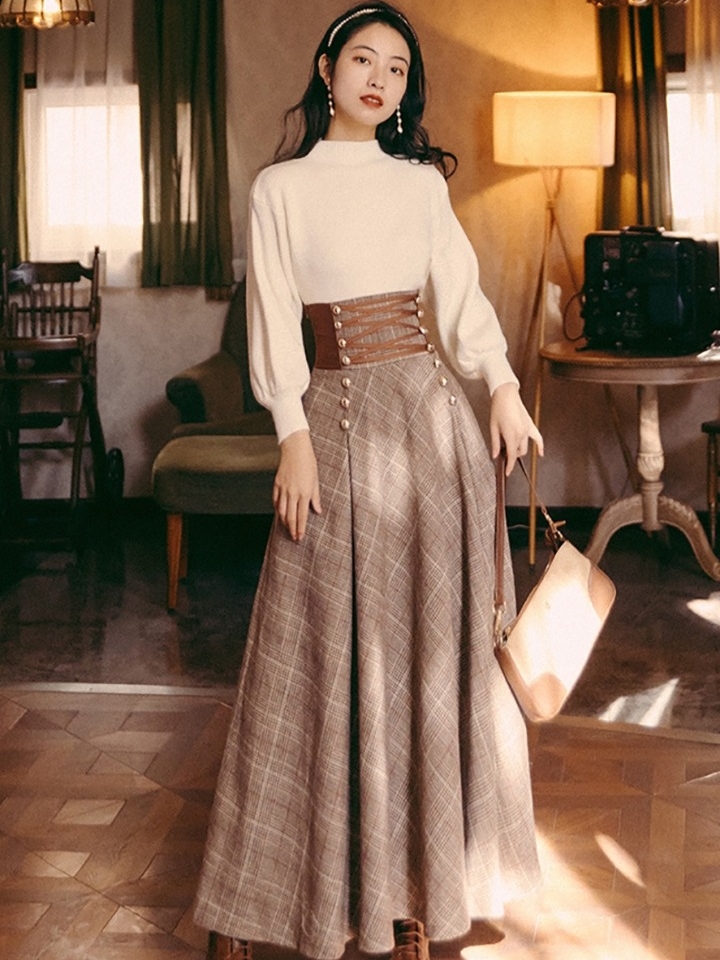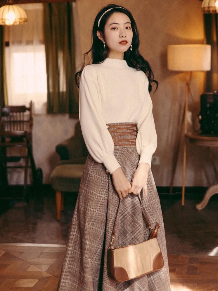 这款针织上衣和半身裙的两件套很有层次,穿在身上充满了古典气息,而且不管搭配什么上衣都好看,值得拥有。