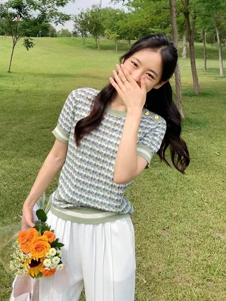 色系清新淡雅,上身特别显白,款式比较小众,避免了出门撞款的尴尬,还很百搭,裙装或裤装统统不在话下。