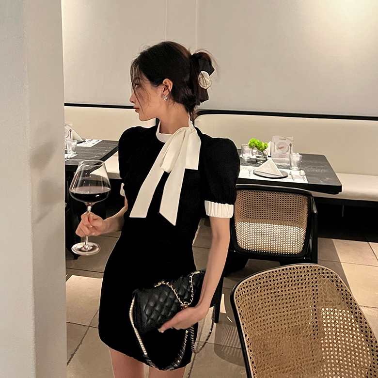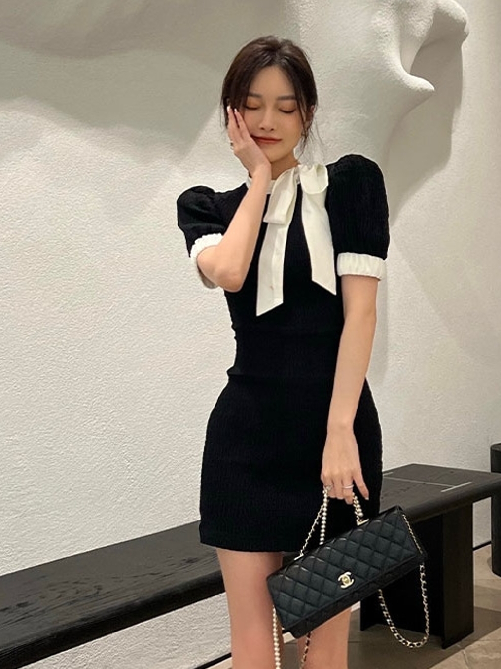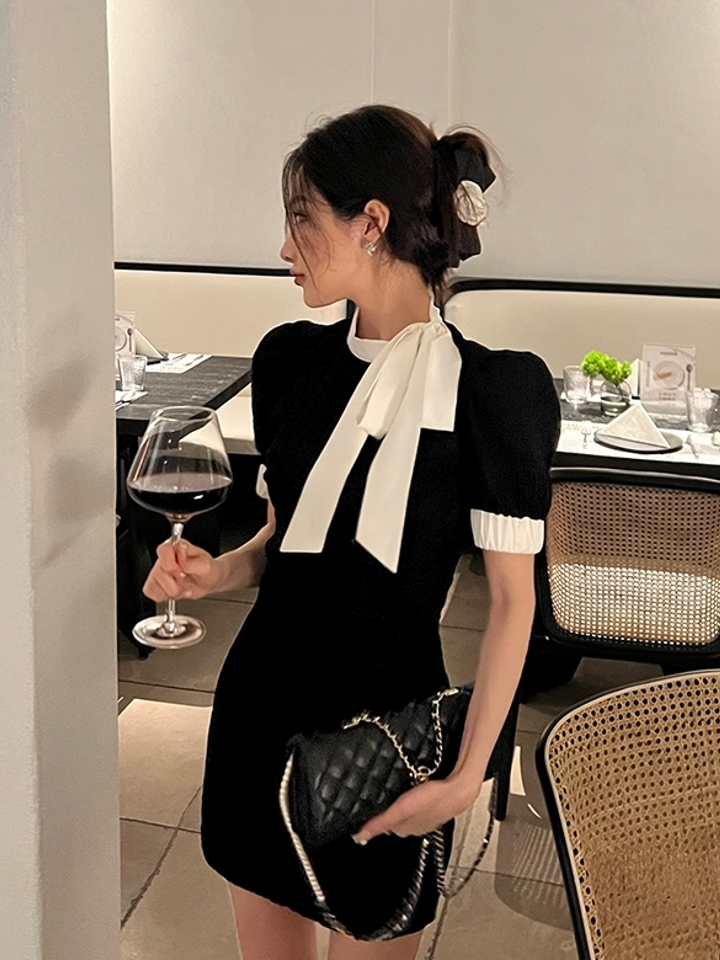 风格小香风修身连衣裙,经典简约的黑白色调、透视虚实结合,融进修身随意的连衣裙中,......