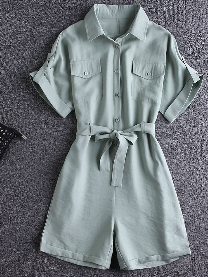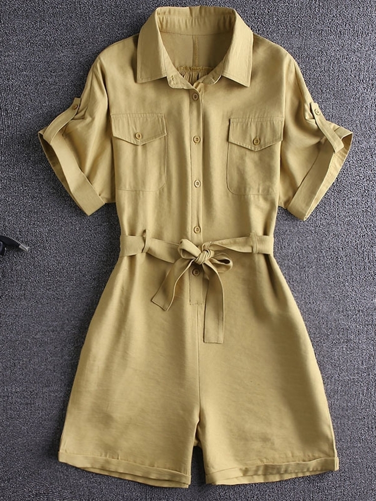 很有范的一款连身裤,穿着有种很浓的艺术感觉,大口袋休闲大气,阔腿的裤脚潮流有青春,而腰部系带收腰的风格,很好的将青春俏皮的味道尽情显露出来。