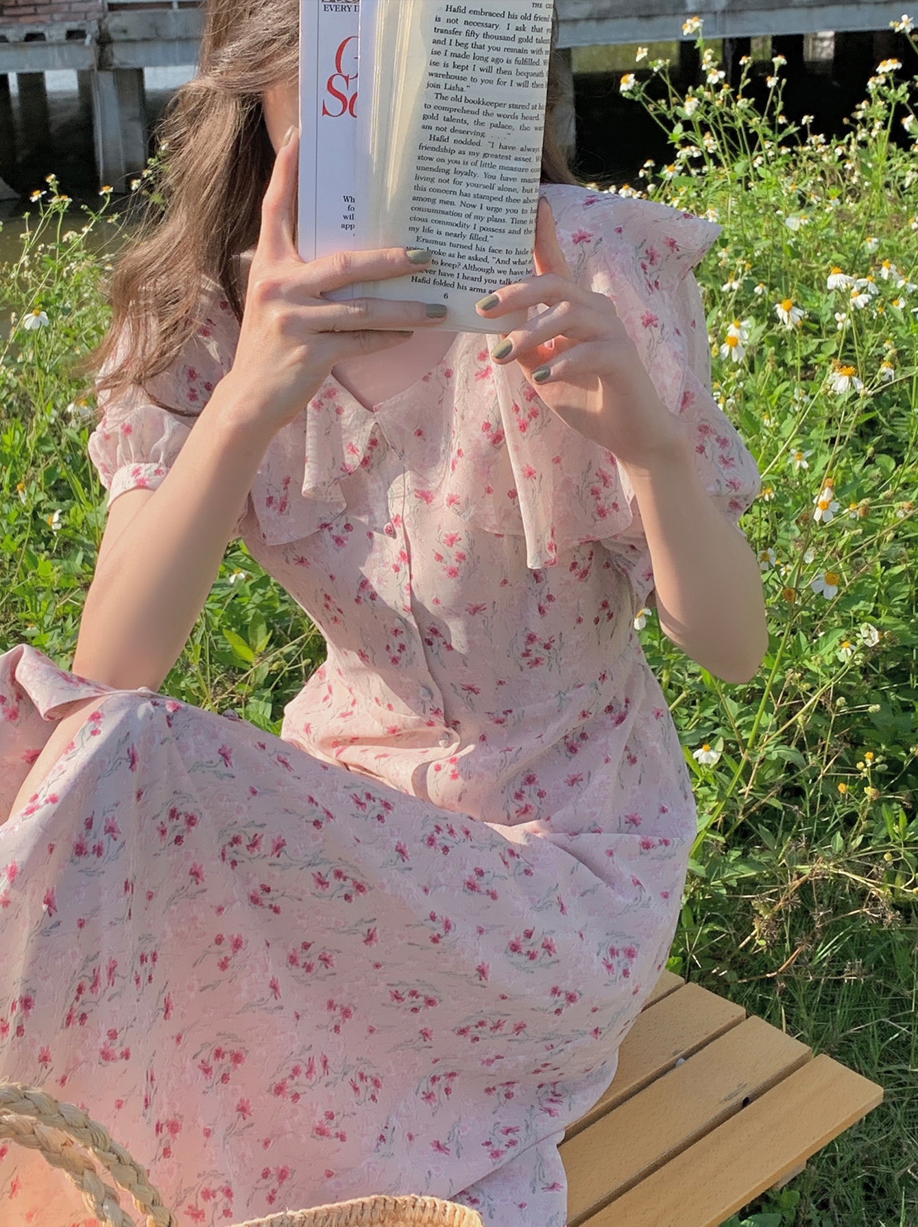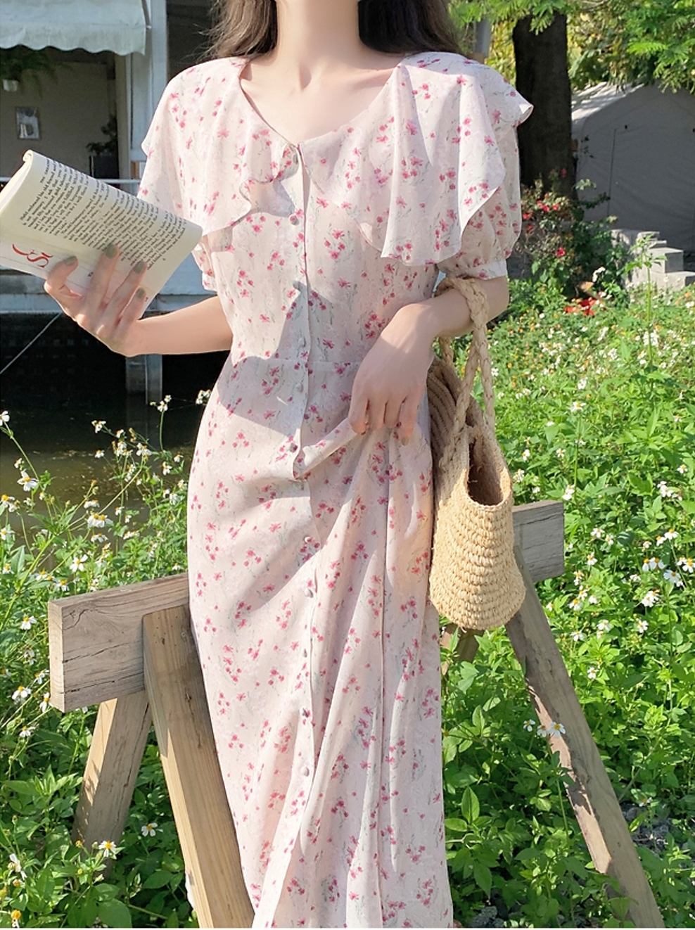 甜美的荷叶领,减龄的同时增加层次感,碎碎的小印花,带来一丝清新的文艺气息,A字版型设计,能够让你的身材比例更加的完美。