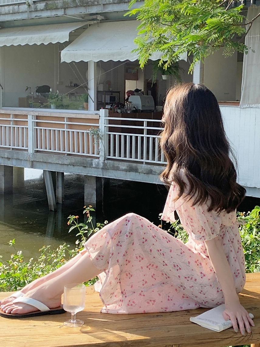 清新素雅的碎花元素,结合宽松的连衣裙裁剪,传递出浪漫的田园风,给人一种慢生活格调。选用了顺滑的雪纺面料,穿着清爽舒适性好,有着飘逸的垂坠美感。