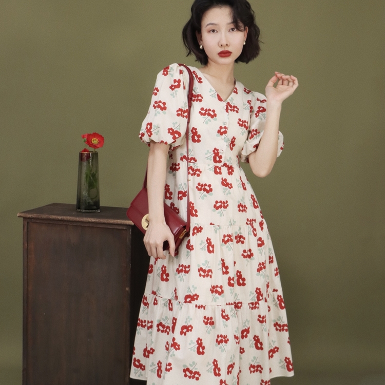 衣身上撞色的印花图案,带有着满满的法式复古风风情,看着很是小清新,拿它搭配一双晚晚单鞋,就很甜美温柔了。