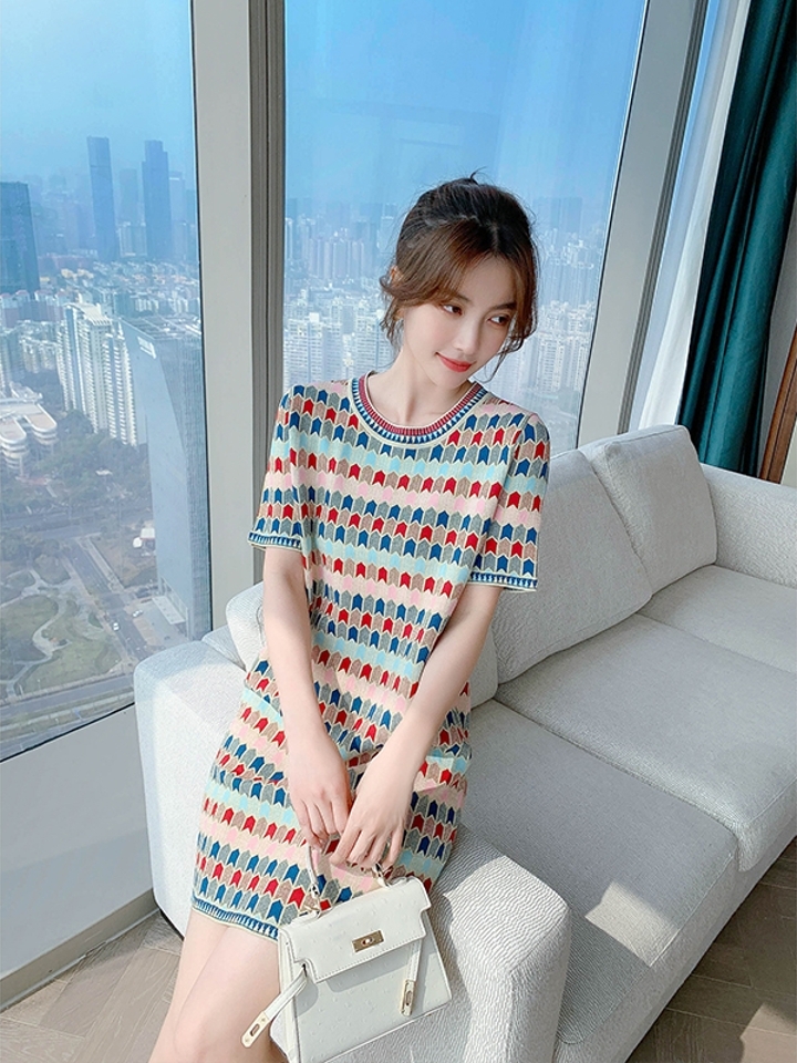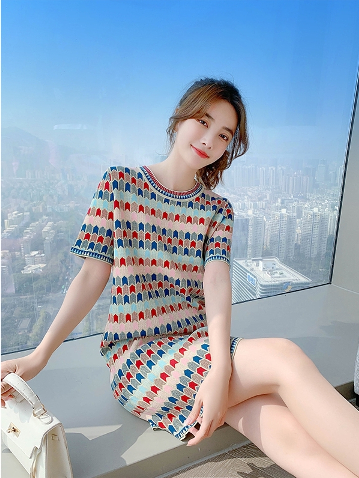 超减龄的一款宽松长款针织裙,简直懒癌美眉的福音,出门这一件就可以搞定,可爱搞怪的印花也非常有特色哦。