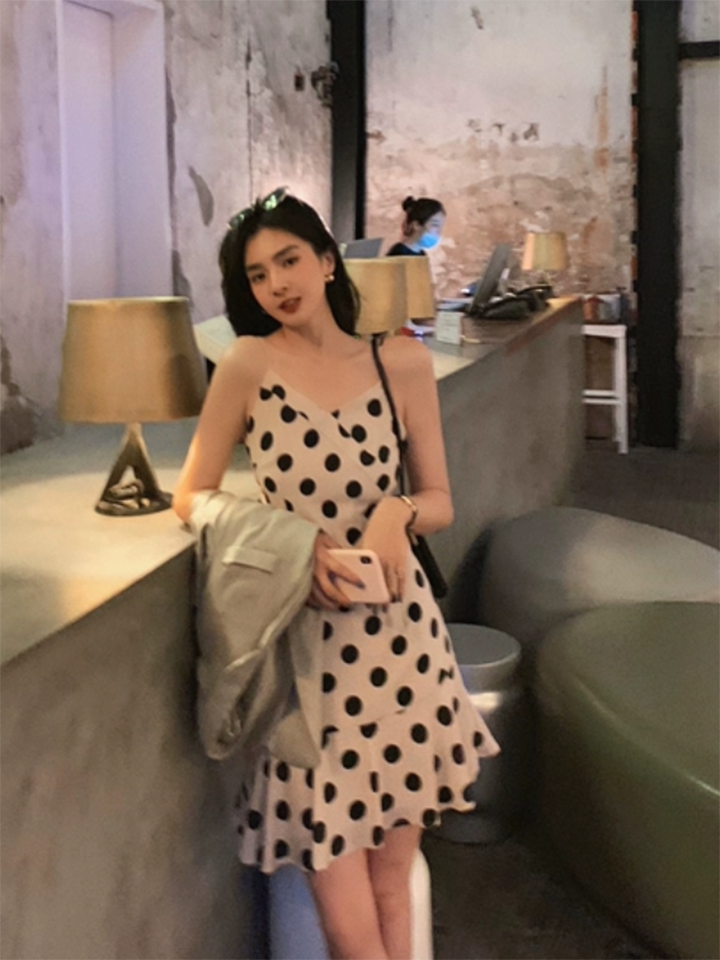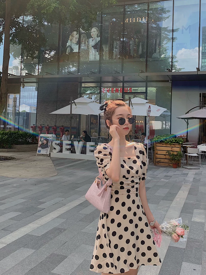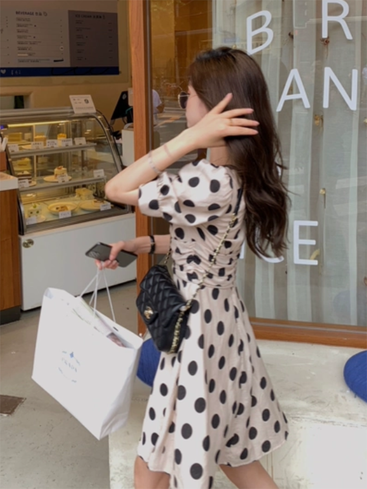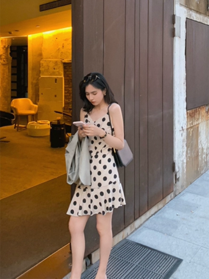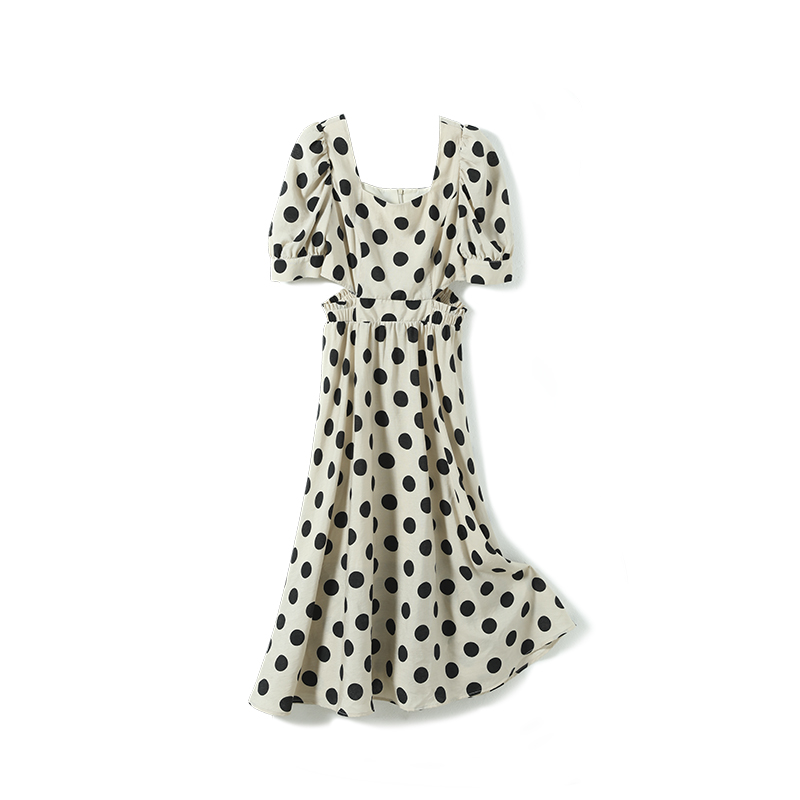 材质分析裙子特别采用波点面料,有着很好的吸收性和透气性。风格连衣裙采用不对称的拼......