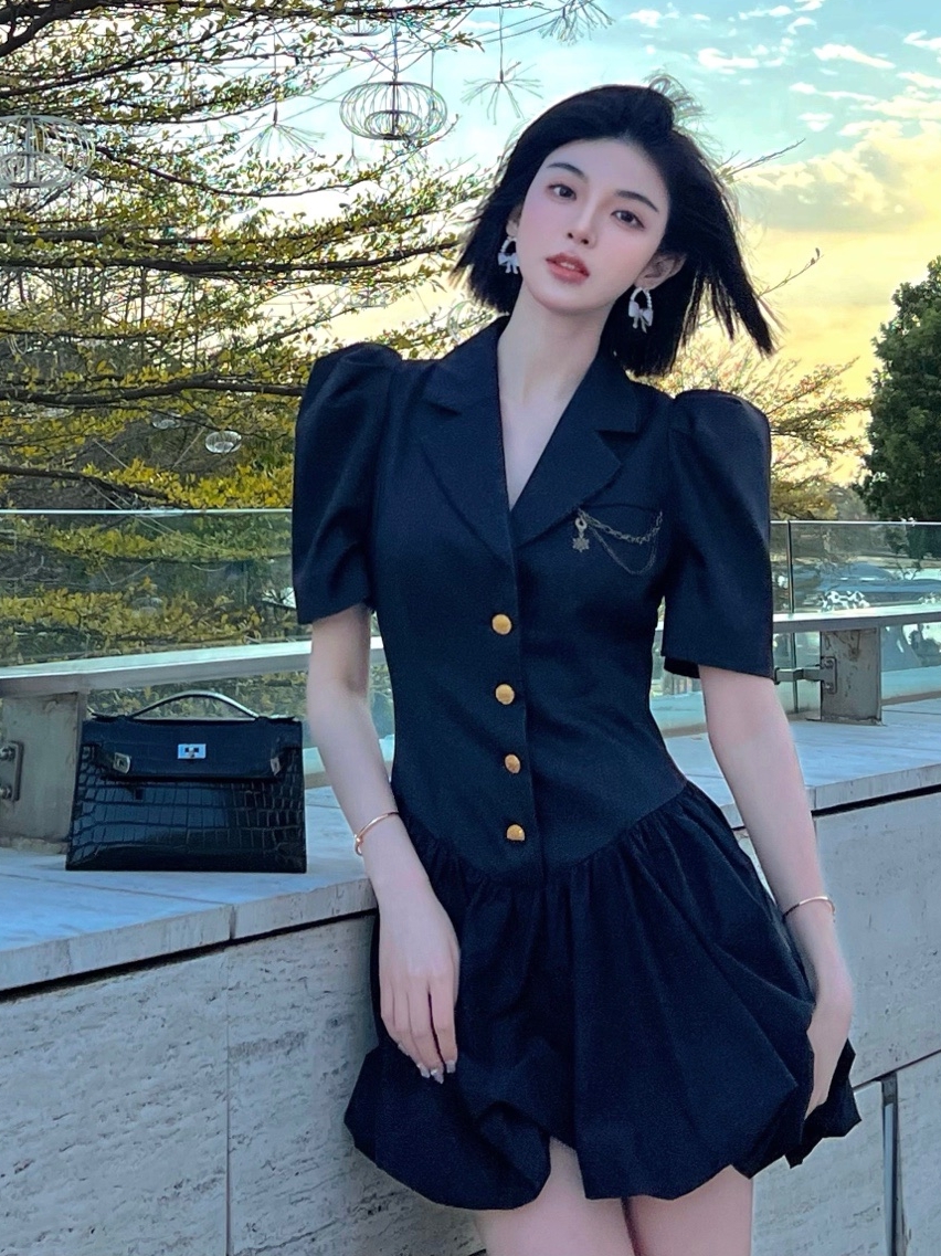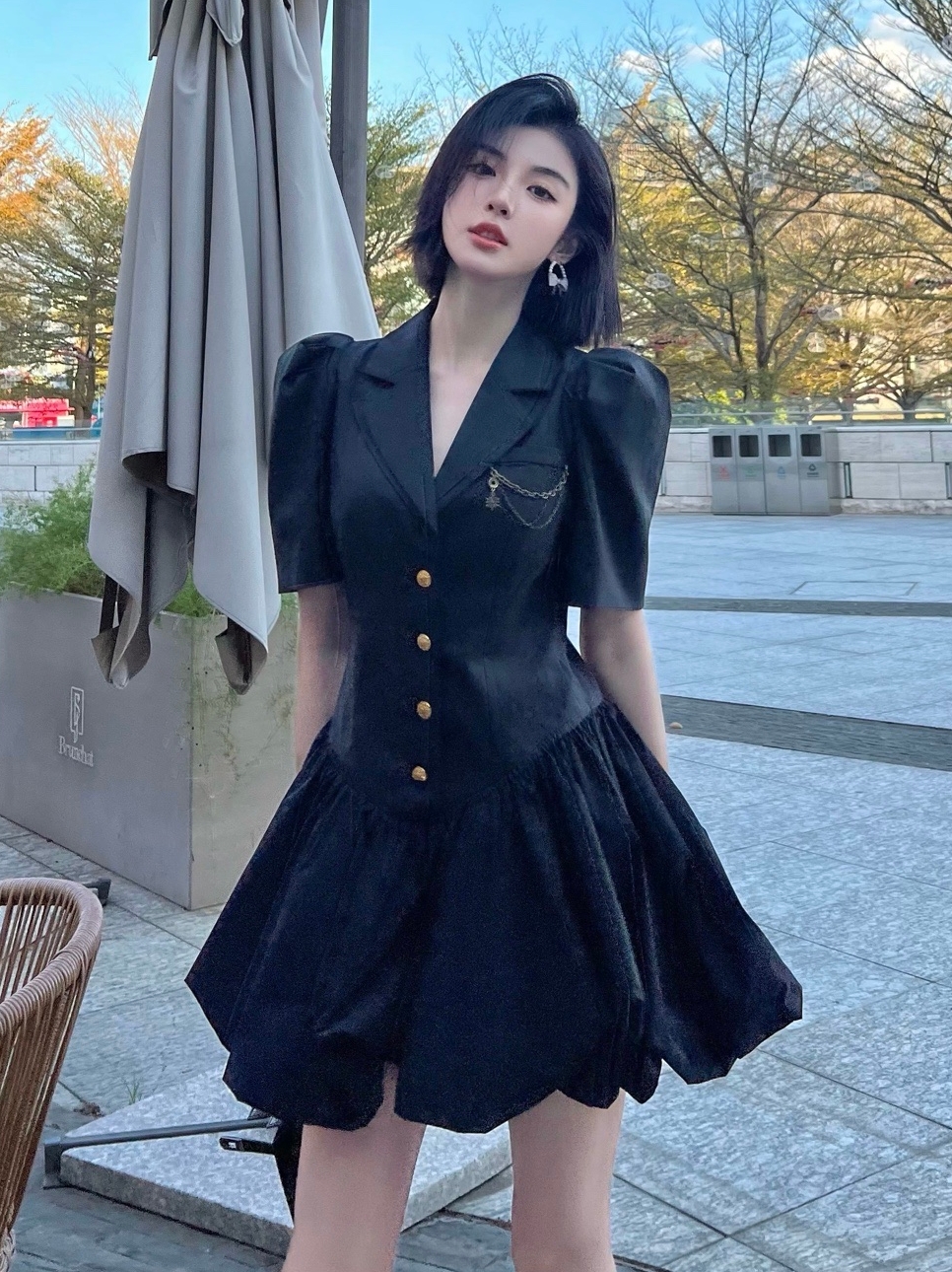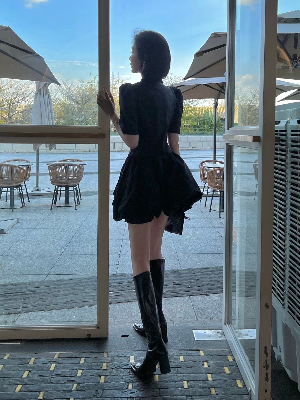 这连衣裙真的太绝啦,155小个子的我也能轻松hold,中长款遮住我比较粗的大腿,脚踩一双黑色长筒靴,穿上立马变身温柔小姐姐。