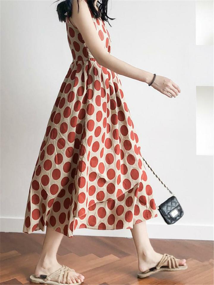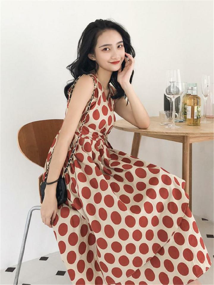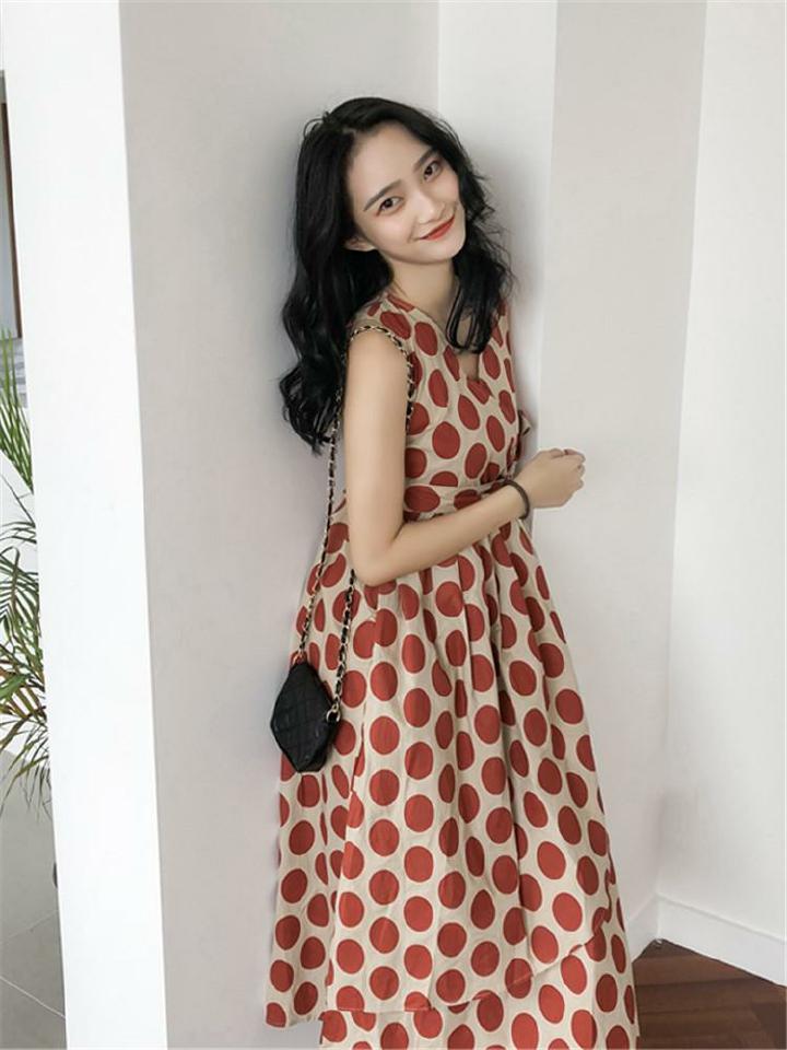 宽松显瘦波点裙,无袖的款式设计,穿着更加的清凉舒适,在夏季还可展现出纤细的手臂,可爱复古的波点点缀,尽显俏皮的活力感,大大的裙摆,飘逸灵动还可穿出仙气。