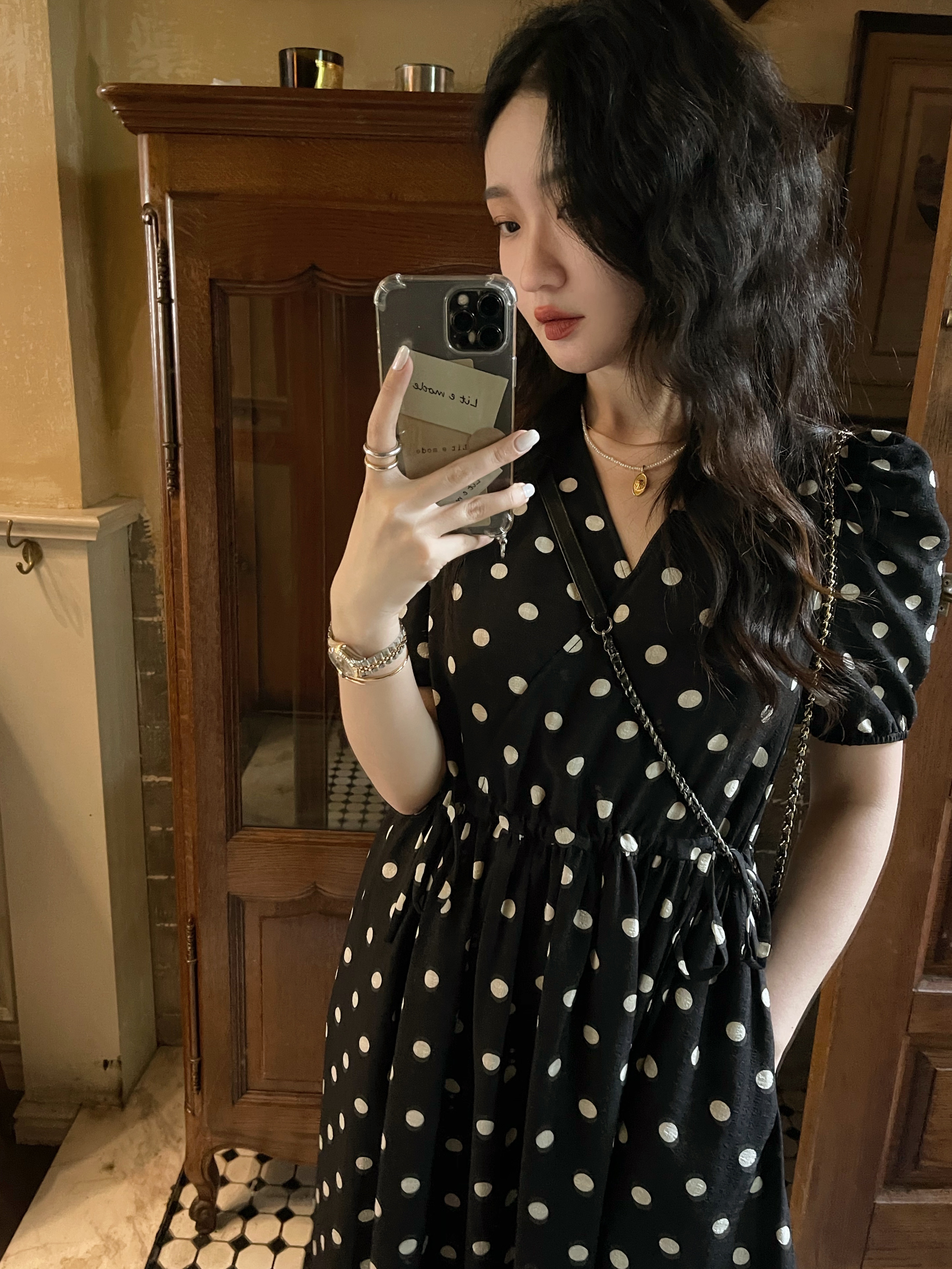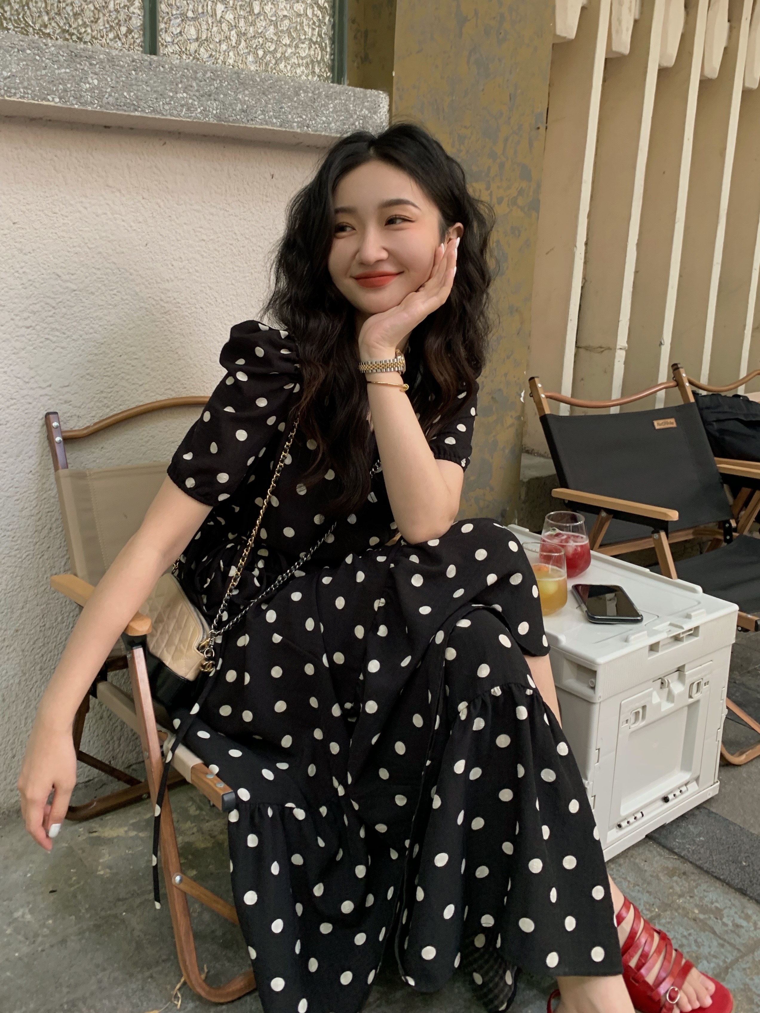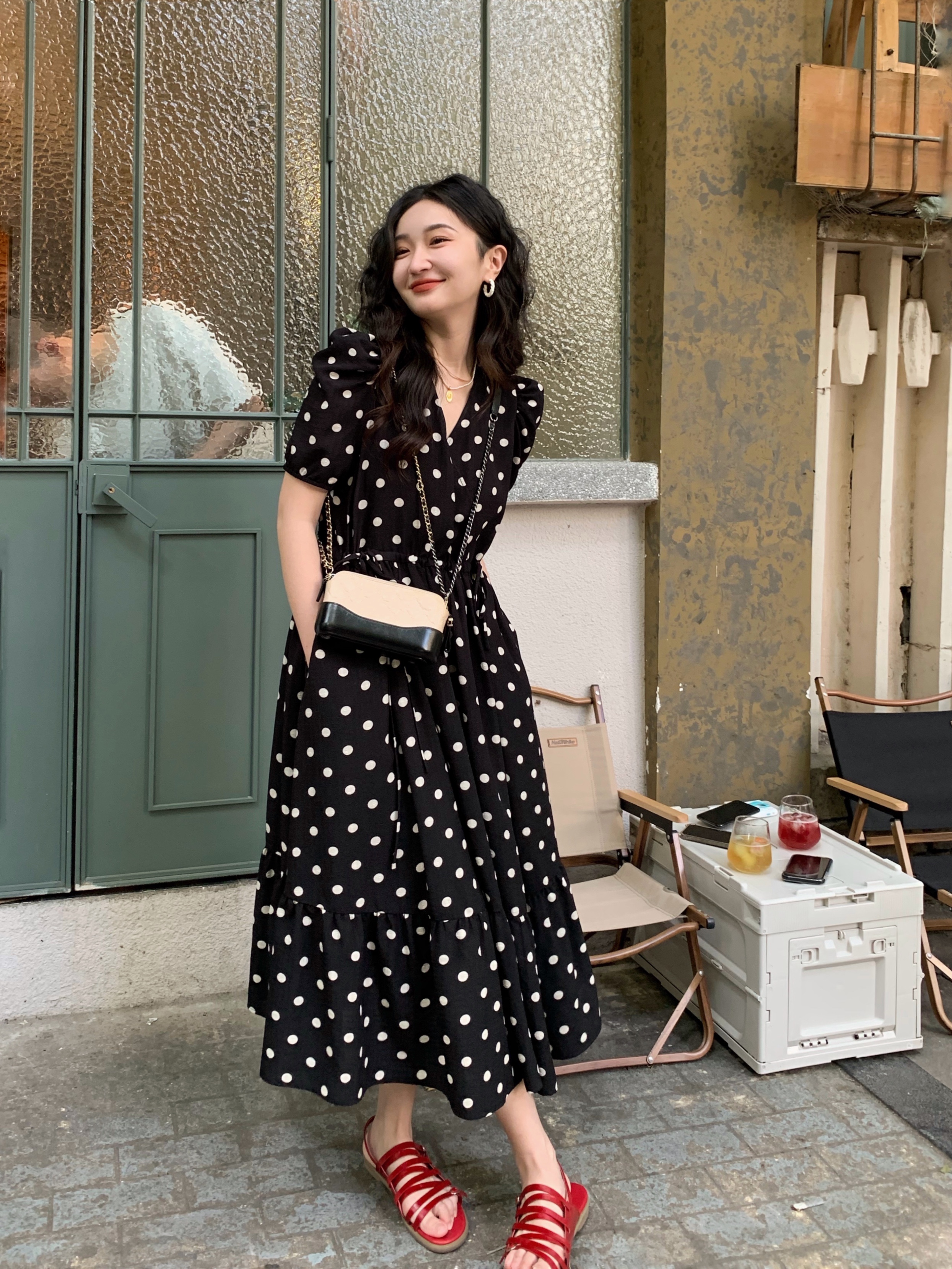 精致唯美的波点修饰靓丽十足,清新有气质的一款连衣裙,我觉得波点的元素是真的很可爱,甜甜美美的,让人忍不住想靠近。