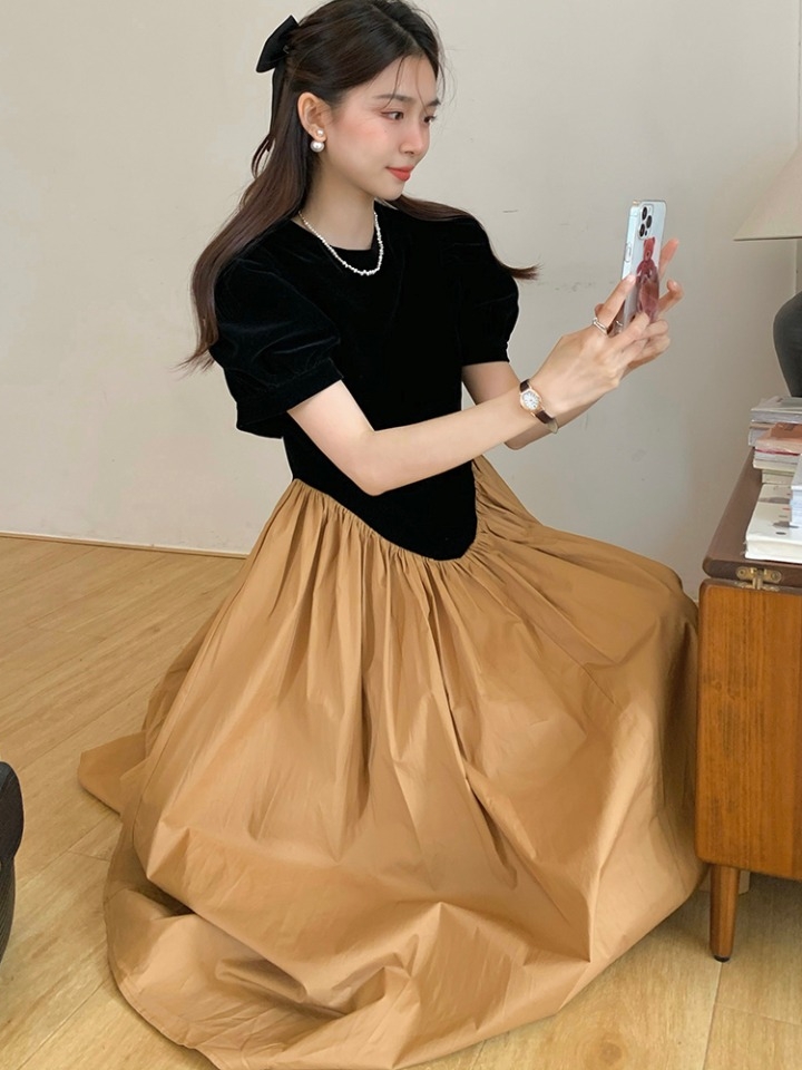 韩范儿连衣裙,精美蕾丝面料,深遂黑色,性感味道自然益处;修身收腰,尽显婀娜曲线;气质白色翻领,清新大气;个性泡泡袖,可爱个性显高挑。