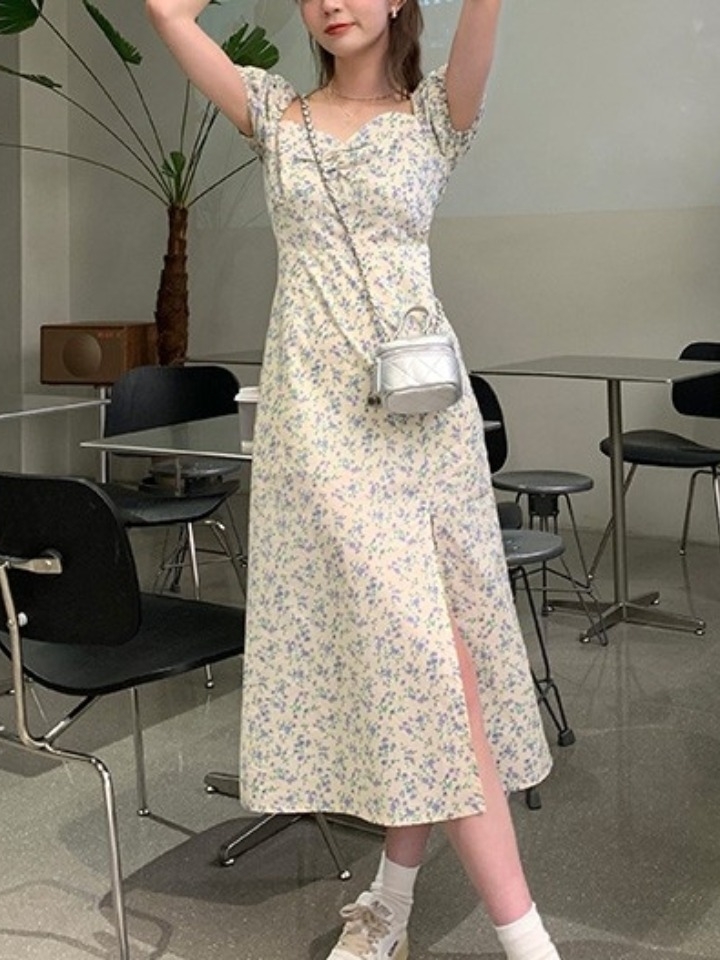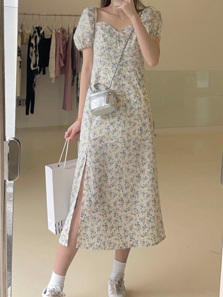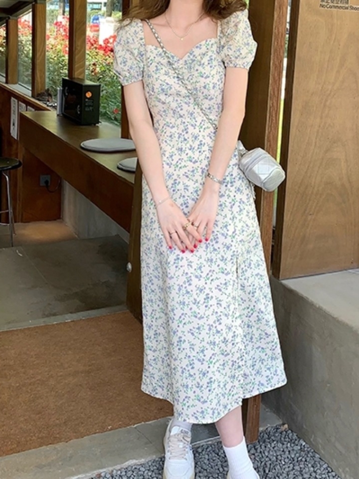 简约别致的方领设计,让颈部线条以及锁骨变得更加的美丽动人,尽显性感魅力,满身碎花的点缀,散发浓郁的小清新气息