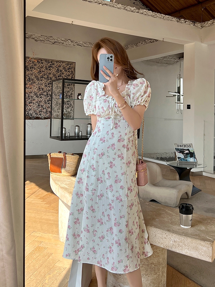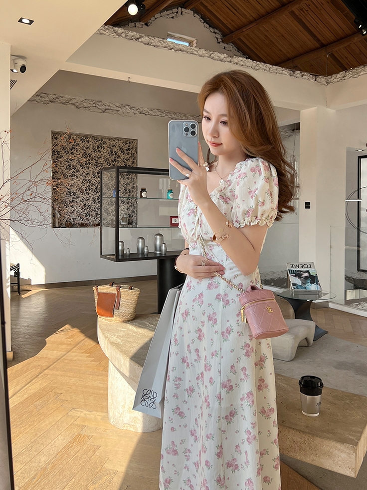是充满夏日氛围感的连衣裙没错啦,裙身选用自带浪漫属性的玫瑰花来设计,将我甜美雅致的一面展现。
